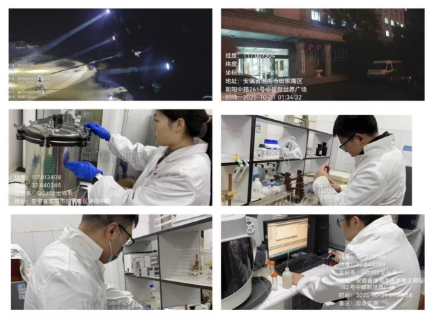 10 月份以来,安徽省淮南生态环境监测中心直面水生态、应急监测响应与常规监测任务叠加的多重考验,以“精准监测”和 “高效联动”为核心抓手,科学统筹资源、双线协同发力,监测分析室协同其他部门人员加班加点,高质量完成多项应急水质监测及水生态采样监测工作,为区域水环境管理决策、生态安全保障提供坚实数据支撑,切实守护淮河安澜与百姓身边的碧水蓝天。