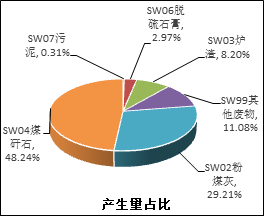 从产废类别来看,2020年淮南市一般工业固体废物主要种类有6个类别,其中产生量前3位的分别为SW04煤矸石1253.99万吨、SW02粉煤灰759.39万吨、SW99其他废物287.92万吨(其中煤泥287.16万吨),合计2301.3万吨,占一般工业固体废物总量的88.5%。截至2020年末,全市共有64家主要大宗固废综合利用企业,煤矸石、粉煤灰等大宗固废利用产业正逐步向标准化、规模化、高端化发展,一般工业固体废物基本得到妥善利用处置。