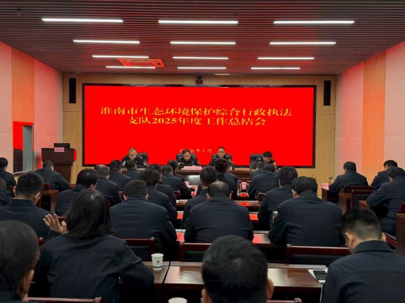 2026年1月12日,淮南市生态环境执法支队召开2025年度工作总结会议,全面总结2025年工作成效,系统部署2026年重点任务,亮出“成绩单”,找准“切入点”,明确“路线图”,为全面开展2026年工作吹响“冲锋号”。